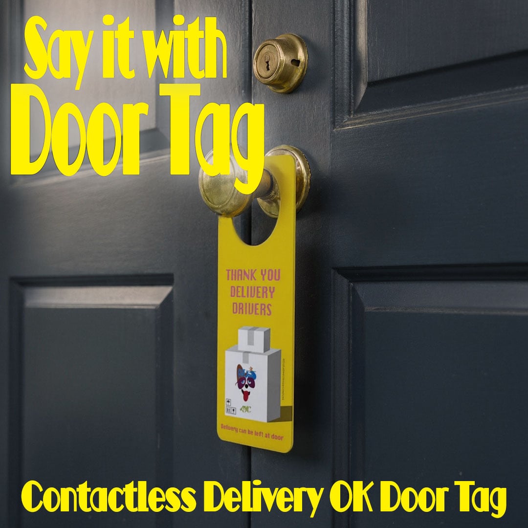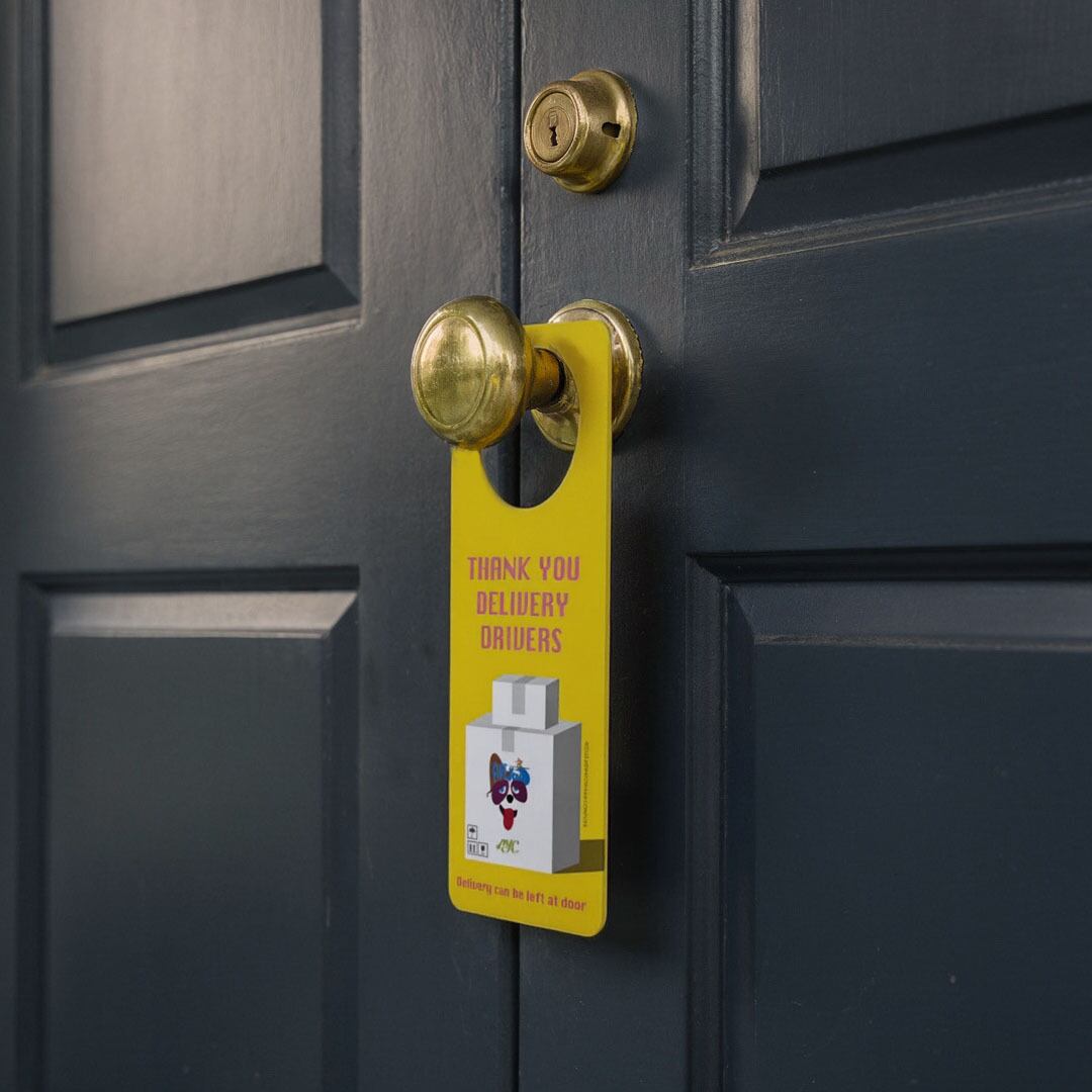 The door hanger is made from water-resistant paper designed for printing.