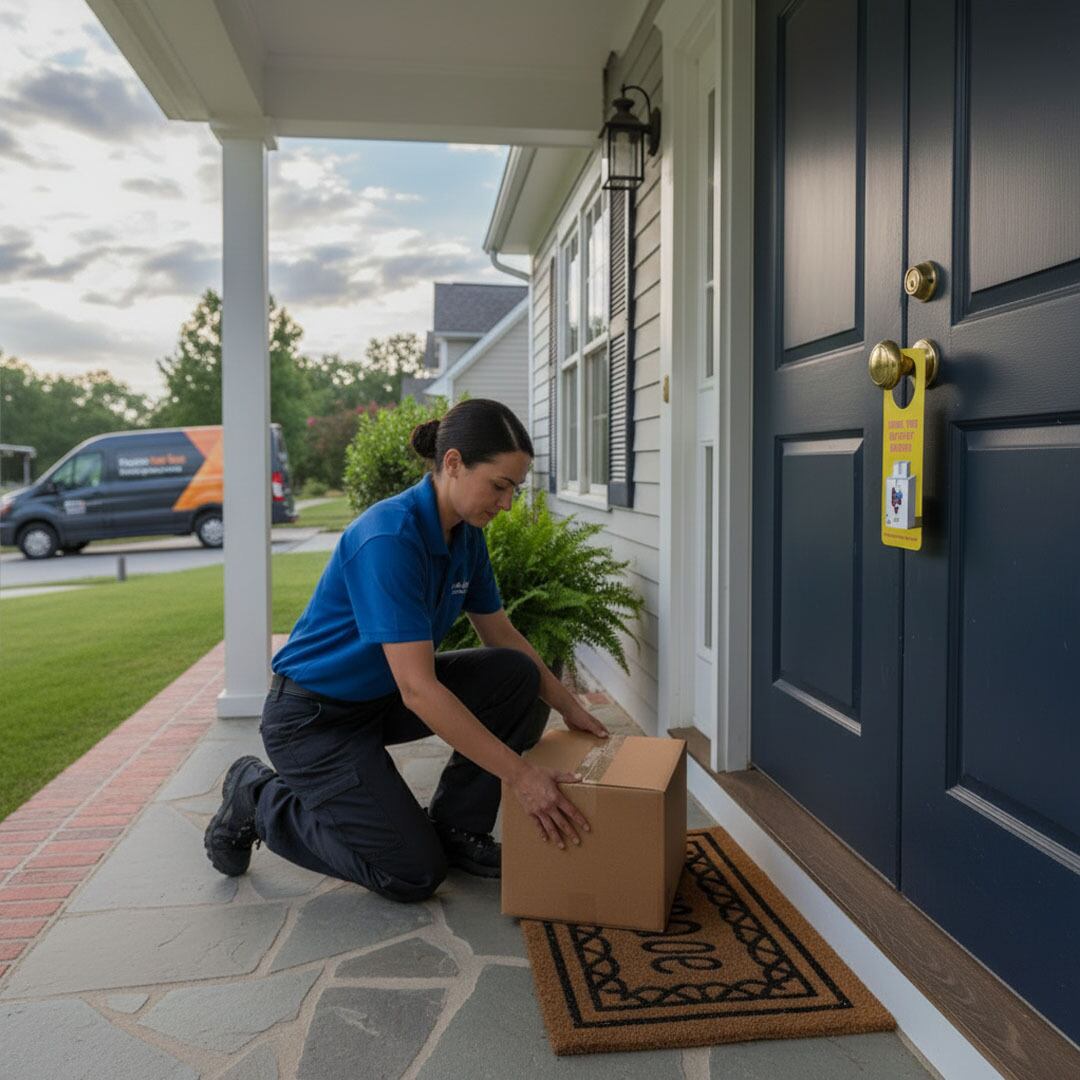 The front side features a cute illustration of Ein and serves as a “Leave Package at Door” sign, helping ensure smooth and hassle-free contactless delivery.